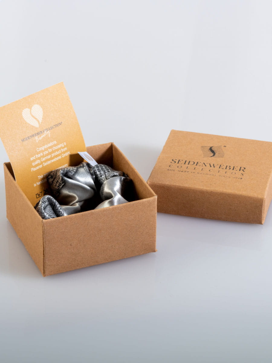 Jedwabna scrunchie to idealne połączenie elegancji i troski o włosy. Wykonana z delikatnego, naturalnego 100% jedwabiu, minimalizuje tarcie i zapobiega plątaniu, pozostawiając włosy gładkie i lśniące. Dzięki delikatnemu materiałowi gumka nie odkształca włosów i sprawdza się nawet przy częstym noszeniu – zarówno do eleganckich upięć, jak i codziennych stylizacji.